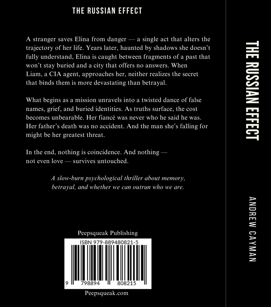 The Russian Effect is a psychological thriller about Elina Sidorov, a woman whose life changes after a stranger saves her in a single, unexpected moment. Years later, she is still haunted by memories she doesn’t fully understand and a past that refuses to stay buried. The story follows her search for answers in a city that only offers more questions.